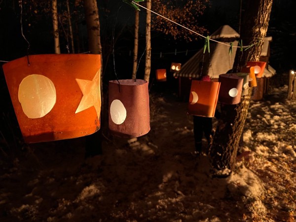Hvert år, den første onsdagen i november, arrangerer vi lanternefest i skogen for barn, foreldre, søsken, besteforeldre og ansatte. Vi inviterer også fjorårets skolestartere. Dette er en fin og magisk stund i skogen, med lys og fakler i mørketiden.